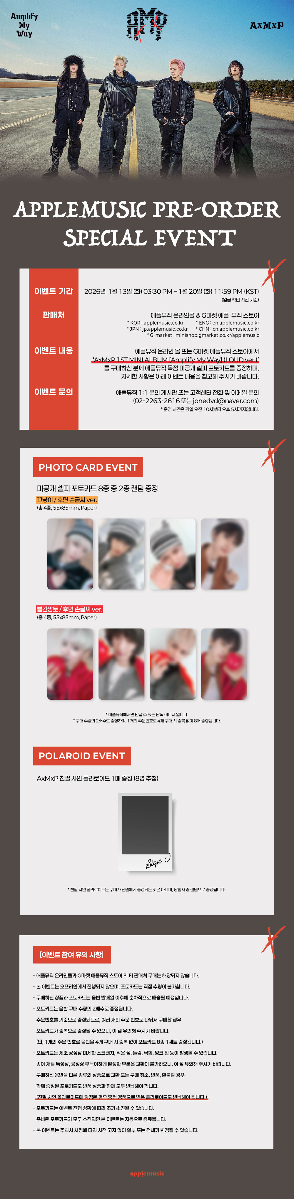 이러한 성장세 속에서 선보이는 미니 1집 ‘Amplify My Way’는 AxMxP가 그려 온 음악적 방향성과 청춘 서사를 더욱 선명하게 확장한 앨범으로, 꿈을 정해 두고 달려가기보다 살아가며 각자의 속도로 꿈의 모양을 찾아가는 청춘의 이야기를 담았다. AxMxP는 꿈에 대한 서로 다른 시선을 통해 지금의 청춘이 각자의 방식으로 공감할 수 있는 ‘꿈의 스펙트럼’을 완성하고, 자신들만의 길을 또렷하게 펼쳐 낸다.