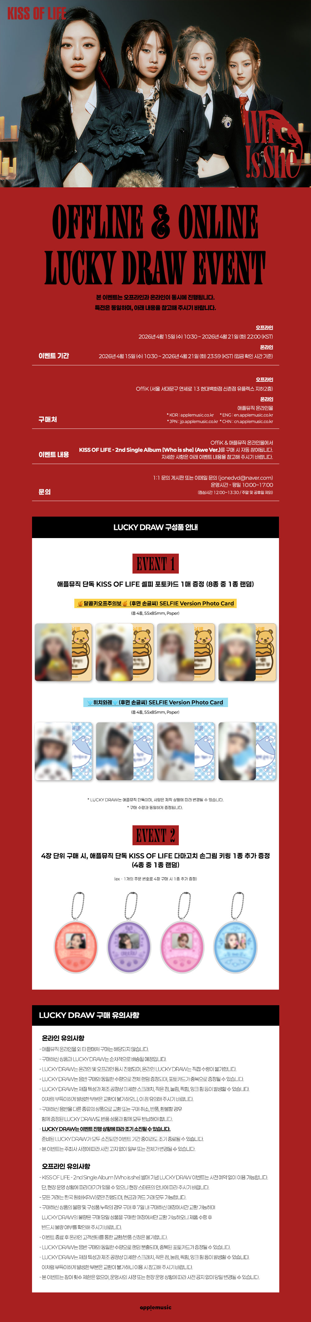 타이틀곡 ‘Who is she’는 아직 규정되지 않은 위치에서 출발한 시선을 강렬한 사운드와 퍼포먼스로 풀어내며, 이어지는 수록곡 ‘Don’t mind me’는 그 이후 찾아온 보다 여유롭고 자유로운 순간을 담아낸다. 서로 다른 분위기의 두 곡은 대비를 이루면서도 자연스럽게 하나의 흐름으로 이어지고, 숨기지 않고 솔직하게 자신을 표현하는 KISS OF LIFE만의 고유한 매력과 에너지가 더욱 선명하게 돋보인다.