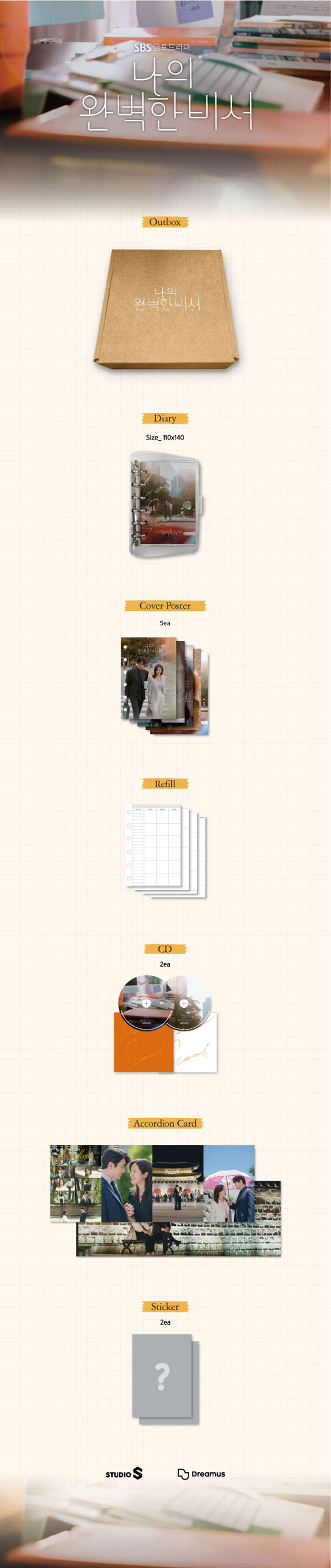 더불어 이번 CD 음반은 '나의 완벽한 비서'의 콘셉트를 담은 다이어리 앨범으로, 드라마 속 명장면들을 담은 아코디언 포토 카드, 커버 포스터, 다이어리 스티커가 함께 수록되어 더욱 높은 소장 가치를 자랑한다.