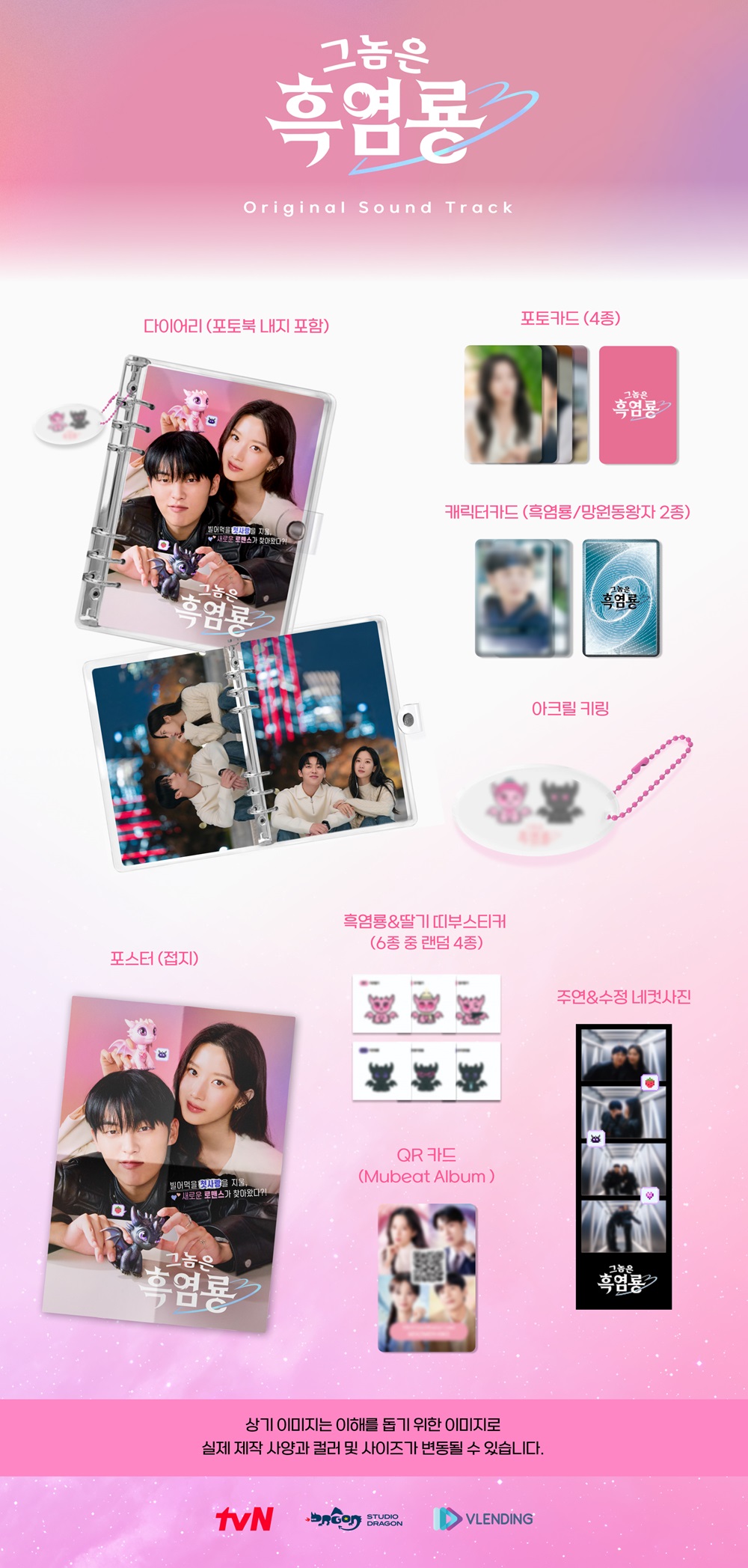 흑역사에 고통받는 ‘본부장 킬러’ 팀장 백수정(문가영 분)과 가슴에 흑염룡을 품은 ‘재벌 3세’ 본부장 반주연(최현욱 분)의 봉인해제 로맨스를 그린 혜진양 작가의 동명의 인기 웹툰 원작 드라마 ‘그놈은 흑염룡’ (연출 이수현/극복 김수연/제작 스튜디오N/기획 스튜디오드래곤)의 Original Television Soundtrack Mubeat Album이 발매된다.