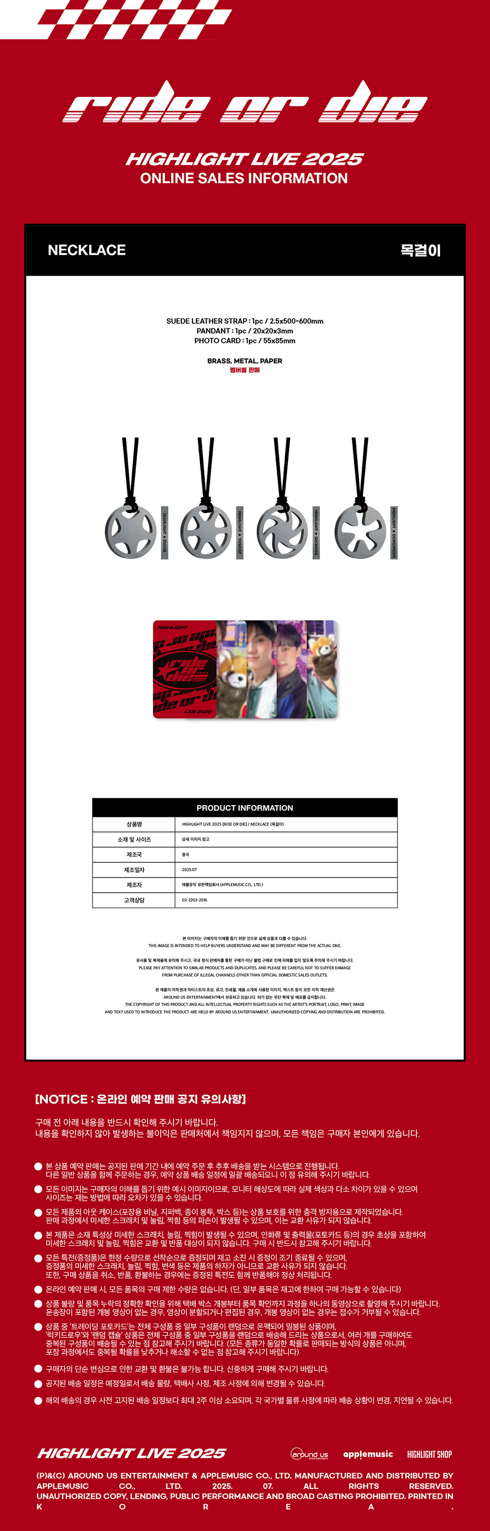 하이라이트 (HIGHLIGHT) - HIGHLIGHT LIVE 2025 [RIDE OR DIE] MD / 목걸이 (NECKLACE)