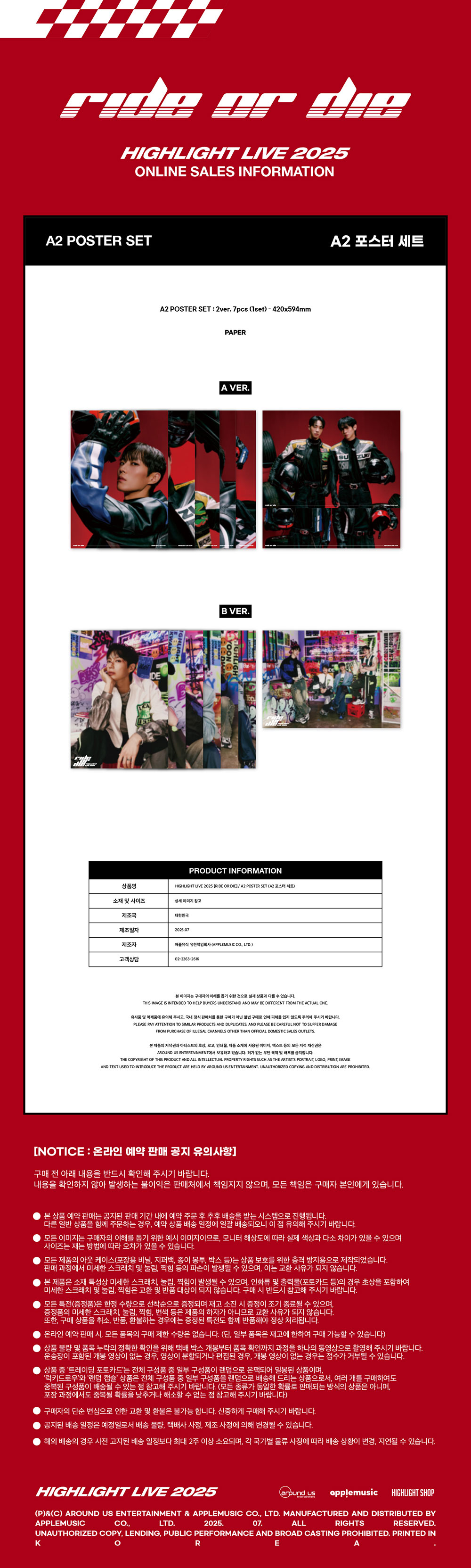 하이라이트 (HIGHLIGHT) - HIGHLIGHT LIVE 2025 [RIDE OR DIE] MD / A2 포스터 세트 (A2 POSTER SET)