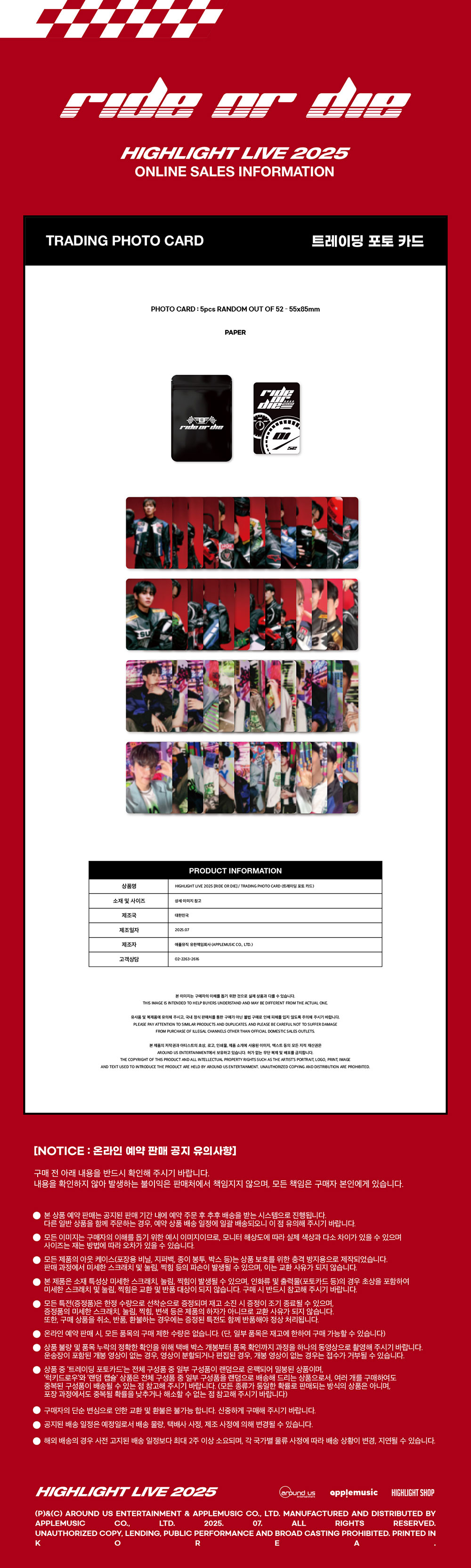 하이라이트 (HIGHLIGHT) - HIGHLIGHT LIVE 2025 [RIDE OR DIE] MD / 트레이딩 포토 카드 (TRADING PHOTO CARD)